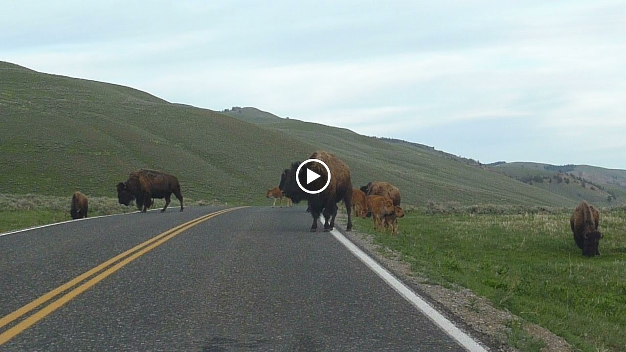 We drove along the Lamar Valley spotting with our binoculars for hours and were about to give up when we spotted an animal coming out of the woods. Finally! A Grizzly Bear! Even from a distance you can see how strong it was. The buffalo started going nuts and stampeding down the whole valley. Our trip to Yellowstone was complete!